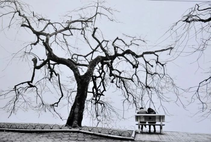 The sorrowful banyan tree stands still in the silence of loneliness,