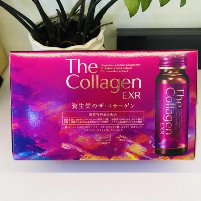 - Collagen Shiseido EXR dạng nước giúp làm chậm tối đa quá trình lão hóa, chức năng chăm sóc cơ thể - da - tóc - móng nổi bật của hãng Shiseido Nhật Bản, dành riêng cho phụ nữ dưới 40 tuổi.
