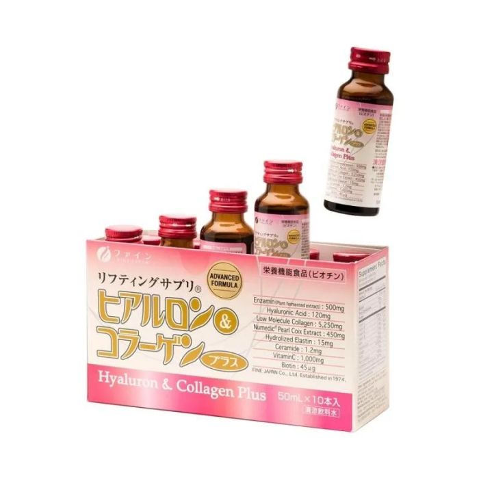 Ingredients: Collagen Peptide (derived from fish – low molecular collagen), Emulsified Coenzyme Q10, Yeast Extract, Fish Elastin, L-Ascorbic Acid (Vitamin C), Hyaluronic Acid, d-α-tocopherol (Vitamin E), β-Carotene, Tomato Extract (Lycopene from tomatoes).