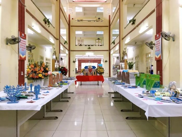 - The library spans 834 m² and houses 4,287 books, 20,583 copies, 79 types of journals, and 47 newspapers, including content in Vietnamese, English, and Chinese.