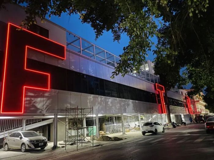 - Alpha Building: This iconic building at the Hanoi campus is recognized as the “signature image” of FPT University. Located in the Hoa Lac high-tech zone, it was designed by architect Võ Trọng Nghĩa and affectionately called the “dragon-shaped building” by FPT students. Its clean white design, with alternating square walls and green balconies, creates a blend of modern architecture and nature. Alpha features six floors split into two sections, R and L. The first floors of both sections house administrative offices like Training, Student Services, Admissions, and other meeting rooms. Floors 5 and 6 in section R are dedicated to the back office. The other floors are student classrooms, with the sixth floor specifically designed for students of Digital Art Design, decorated with artistic flair. Hallways on the sixth floor also showcase student-made projects.