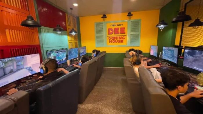 If you're a gamer who loves a retro vibe, then head over to Dee Net in Phu Nhuan District. The spacious, airy space features a dominant yellow color scheme and classic decorations, creating a cozy and comfortable atmosphere. Each gaming room is equipped with air conditioning, large cushioned chairs, making it an ideal spot for professional gamers.