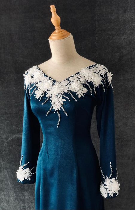 One unique feature of Kim Dung’s brand is the intricate beadwork and stone embellishments on their designs. The shop owner personally creates impressive patterns by hand, which adds a distinctive touch to each Ao Dai. If you prefer simpler, more delicate designs, Kim Dung offers plenty of options to suit your taste. When you visit Kim Dung Tailoring, you’ll receive personalized advice on fabric color, material, and styles that best complement your body shape and intended use.