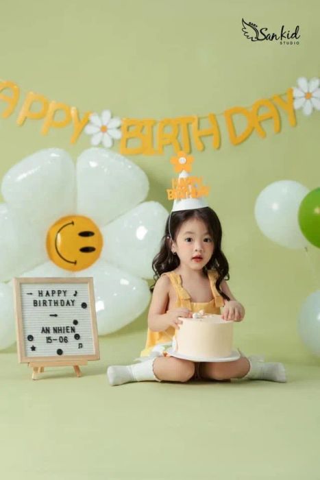 To receive a quote for birthday and first-birthday photo shoots at SanKid Studio, you can contact them via the hotline: 0386 779 888 (Ms. Dung) or 0921 279 000 (Ms. Nhạn), or visit the studio at 179-181-183 Nguyễn Xí, Ward 26, Bình Thạnh District, Ho Chi Minh City.