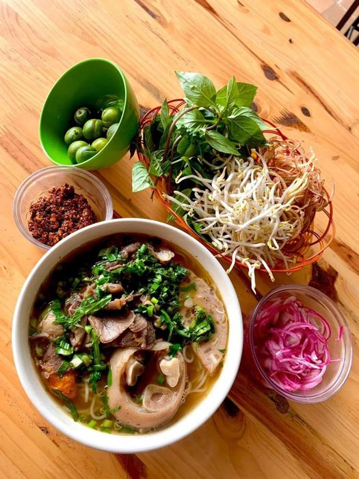 There are various options on the menu, such as beef noodle with shank, with meatballs, with brisket, or with tendon. The aroma of the steaming hot bowl of noodles, with its fragrant broth, will surely tempt you to dig in immediately. The broth is loved by many for its sweet, clear taste, with fragrant lemongrass and shrimp paste. Just the smell will transport you straight to Hue, with a delightful mix of spiciness, tanginess, and delicious, nourishing flavors. This place offers hearty bowls of beef noodles that will have you coming back for more.