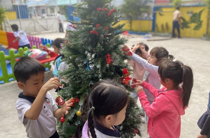 At this time, the children of our school have also joined in by crafting their own classroom decorations to welcome Christmas and the New Year. They've even been guided by their teachers to prepare delightful performances for the grand Christmas Eve celebration.