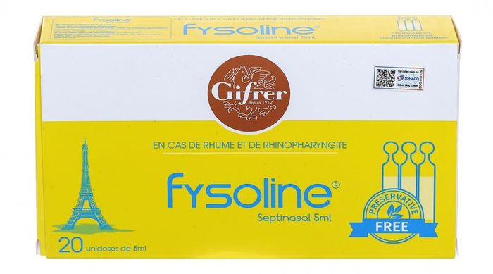- Fysoline saline solution is used for daily hygiene, helping to remove mucus and secretions from the nose and preventing respiratory infections. It is also used for cleaning the eyelids and corners of the eyes, removing foreign particles, and assisting in the treatment of conjunctivitis.