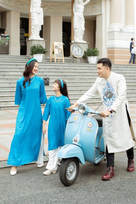 Tet is not just a time for reunion, but also an opportunity to enjoy the season with loved ones. Last year, as promised, Vania introduced a special Tet Ao Dai collection designed specifically for small families. The collection features bright, spring-inspired colors and is made from high-quality fabrics such as silk, brocade, velvet, linen, and taffeta.
