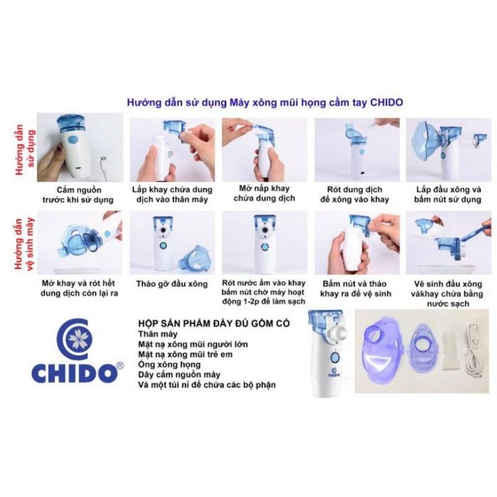 Chido Handheld Nebulizer is a portable device designed to treat respiratory diseases such as sore throat, rhinitis, bronchitis, asthma, and pneumonia. Using ultrasonic waves, it breaks down the liquid medicine into fine particles that can penetrate deep into the respiratory system, maximizing therapeutic effectiveness down to the alveoli. The device comes with both a child-sized and an adult-sized mask, making it ideal for both children and adults for home respiratory treatments.