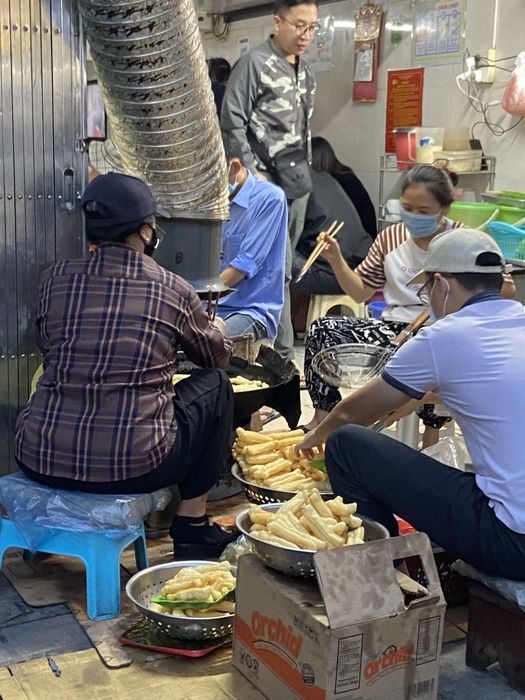 Despite its humble setting, the dedicated service and distinct flavor of the crispy fried dough make Quẩy nóng Nguyễn Lương Bằng a must-visit spot for those looking to explore unique street food flavors.