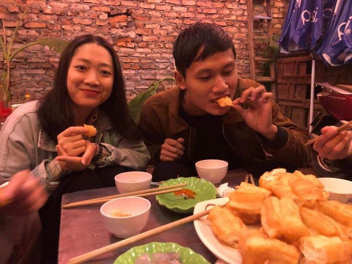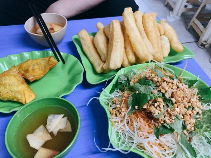 Each piece of dough stretches up to 40 cm, making it impossible to ignore. It's not just a snack; it represents tradition and the carefree nature of Hanoi's street food culture. The shop’s simple setup with neatly arranged tables on the sidewalk exudes warmth and familiarity, offering a nostalgic return to the heart of Hanoi’s old streets.