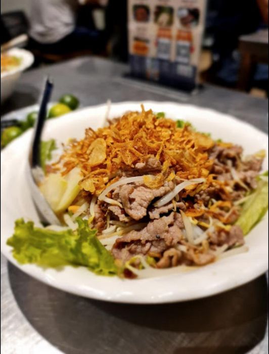 Each serving of Bun Bo Nam Bo here feels fresh and full of flavor. The tender beef, fresh bean sprouts and herbs, crispy fried shallots, crunchy roasted peanuts, and the sweet-sour dipping sauce all come together to create a unique and unforgettable taste. Every ingredient is carefully chosen and harmoniously combined, ensuring a memorable culinary experience with each bite.