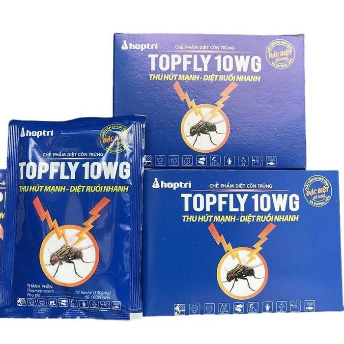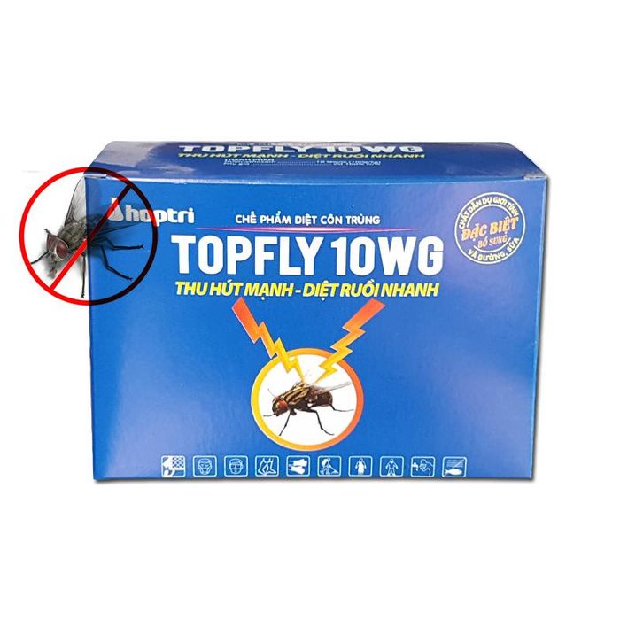 - Mix 400g of Topfly 10WG in 3.2 liters of water, and spray directly onto walls, areas around living spaces, warehouses, animal enclosures, or places with heavy fly activity.