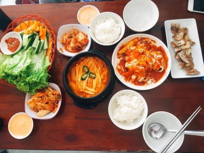 A popular dining spot that locals often recommend is Hàn Xẻng Quán. Upon entering, you'll notice the clean, spacious, and well-decorated atmosphere, which has earned the restaurant a great reputation. The food is prepared perfectly to suit the Vietnamese palate, and the restaurant offers combo meals so you can enjoy a variety of flavors at an affordable price. The attentive and friendly staff ensure excellent service, even during busy times. Hàn Xẻng Quán serves a diverse range of delicious Korean dishes, with a spacious environment and prices that cater to all customers. The restaurant uses only fresh, high-quality ingredients, so you can enjoy your meal with peace of mind. Each dish is carefully seasoned to perfection, making it a popular spot for friends to meet up, especially on weekends. Be sure to stop by Hàn Xẻng Quán and indulge yourself!