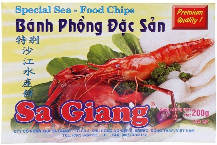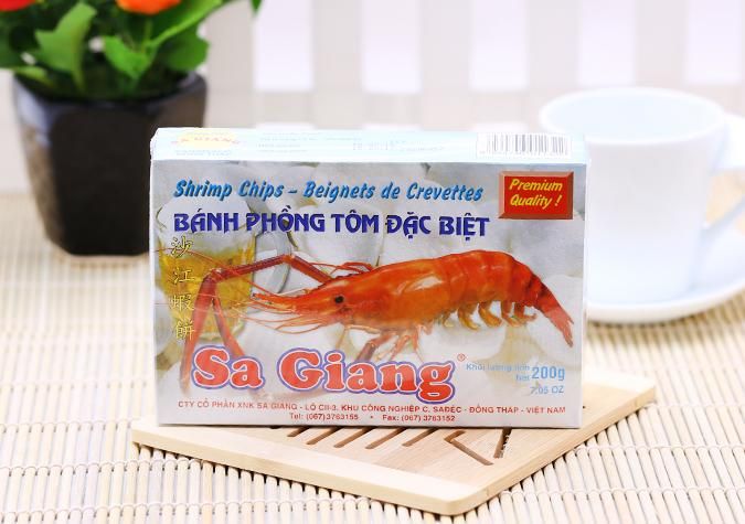 Sản phẩm bánh phồng tôm thương hiệu Sa Giang của Công ty đã nổi tiếng tại Việt Nam từ những năm 1960. Từ các loại tôm nước ngọt, nước mặn như tôm tích, tôm sắt, tôm bạc, tôm nghệ, tôm sú, ... qua bàn tay chế biến khéo léo của con người đã mang lại hương vị đặc trưng của bánh phồng tôm đậm vị. Hiện nay để đáp ứng nhu cầu, công ty đã đưa ra thêm nhiều sản phẩm mới mang đến những trải nghiệm ẩm thực tuyệt vời cho khách hàng.