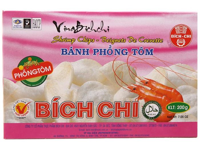 - Bich Chi Shrimp Chips are made from ground shrimp, flour, and a touch of pepper, using modern production technology. Each step, from ingredient selection to packaging, is rigorously controlled to ensure the highest quality. These chips contain no harmful chemicals or preservatives, making them safe for consumers.