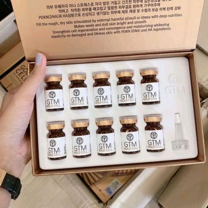 Link to purchase: shopee.vn/Lẻ-1-lọ-DNA-GTM-GOLD-CELL-cá-hồi-5--căng-bóng-trắng-sáng-trẻ-hóa-da-3-3ml-Hàn-Quốc-i.69688462.9804639289?