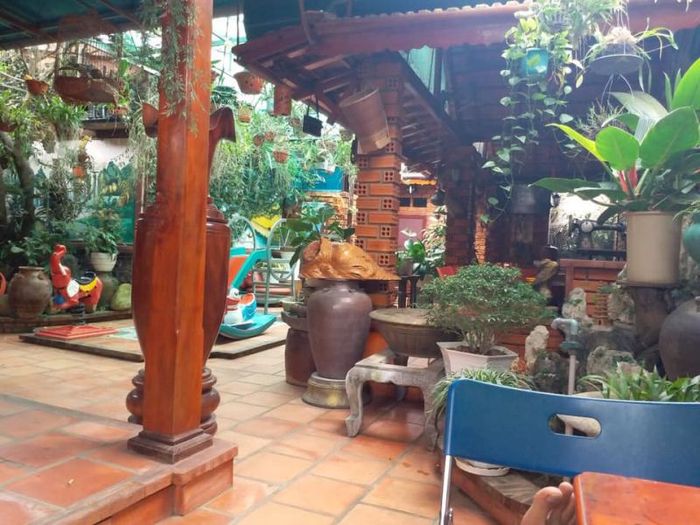 The cafe's design is simple and refreshing, offering plenty of open, airy spaces. Outside, you’ll find a spacious garden with walls covered in greenery, creating a cool and tranquil atmosphere. Inside, the vintage-style decor brings warmth and coziness to the environment. The coffee served here is known to be 100% pure and rich in flavor, making it irresistible. What could be better than leaving your worries behind and savoring a delicious cup of coffee at this peaceful spot?