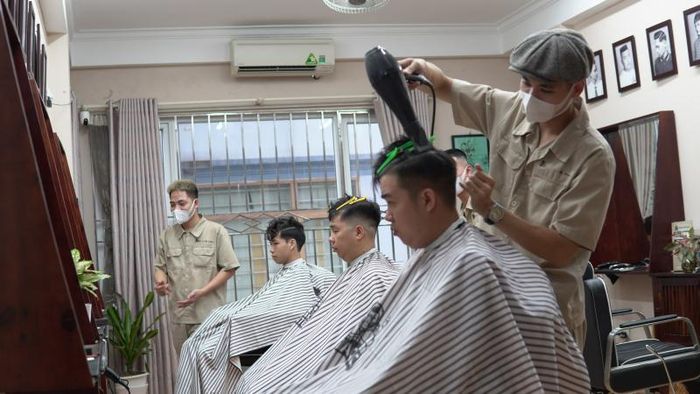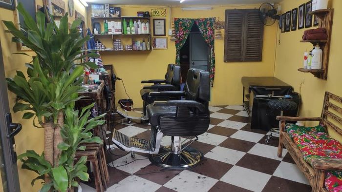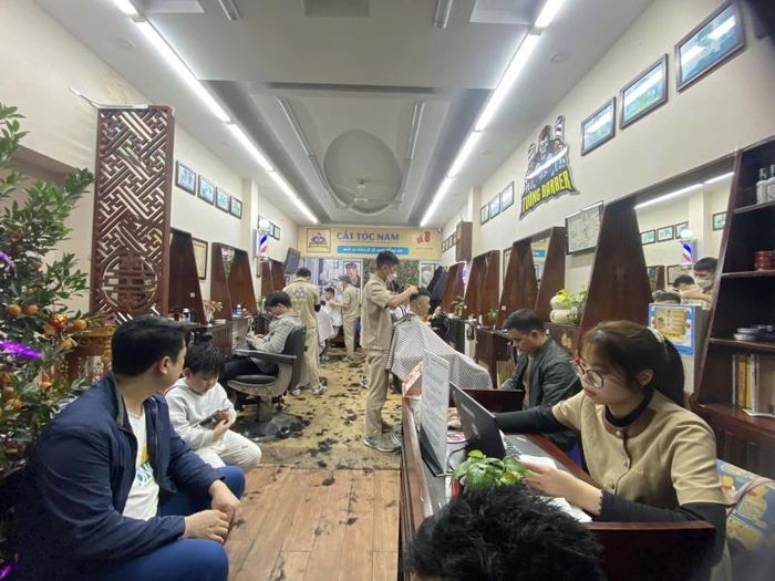 Tuong Barber is a well-known men's hair salon in Nam Tu Liem District. The shop offers a unique atmosphere with many decorative images arranged meticulously on the walls. From the moment you step inside, you’ll be impressed by everything, from the furniture to the tools like scissors and clippers.
