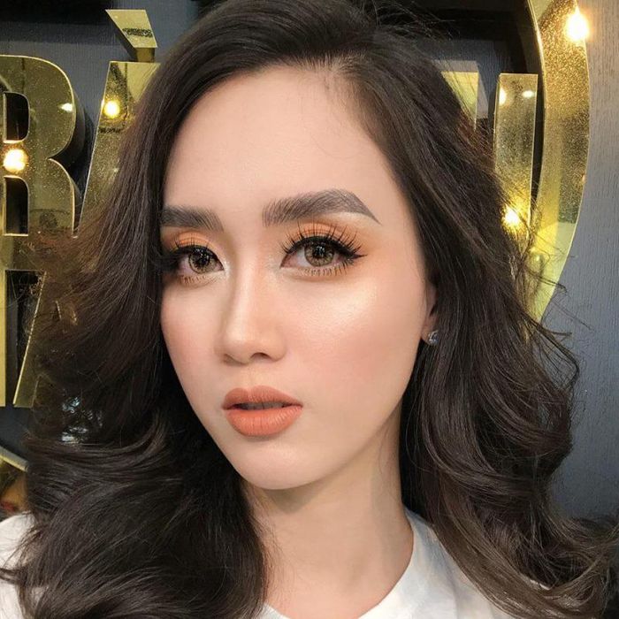 The current trend favors a natural, youthful tone with a touch of elegance and modernity. A light foundation is used to subtly conceal imperfections, paired with a shimmering orange eye makeup and a delicate brown eyeliner for a fresh, natural look. If you’re a fan of this style and are looking for a professional makeup artist in Ba Đình, Hanoi, Phương Khanh Make Up is the perfect choice for you.