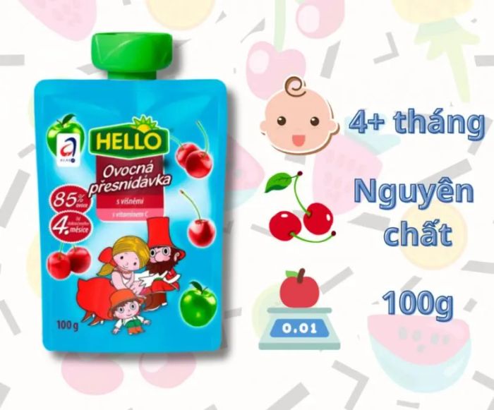 Hello Pureed Fruits combines the best of fresh, natural fruits, imported directly from Europe. This product not only delivers the delightful taste of fresh fruits but also provides essential Vitamin C, supporting your child's healthy growth and development.