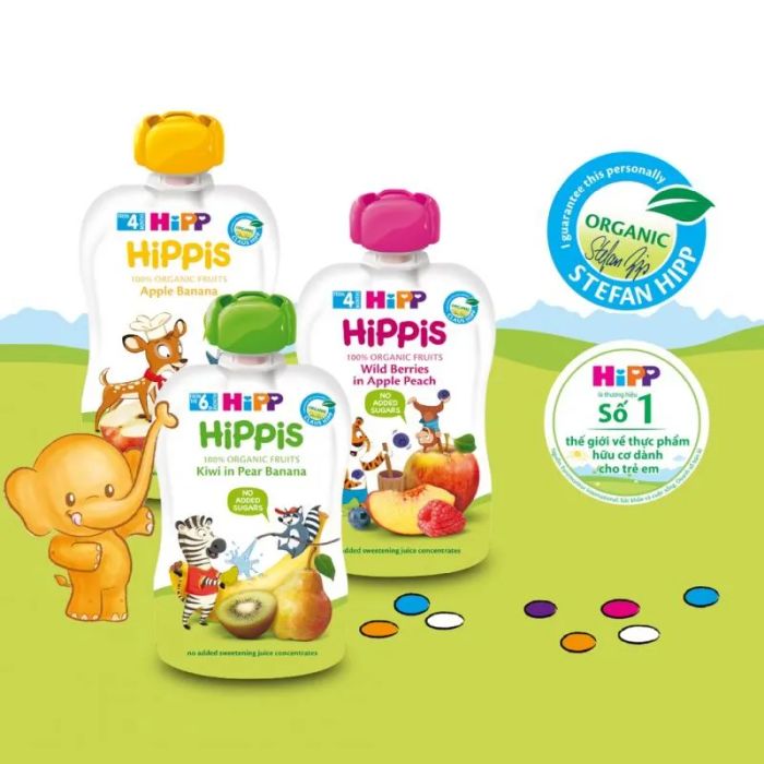 With concerns about food safety today, particularly with fruits, many parents worry about what to feed their children. Organic HiPPiS Pureed Fruits is the ideal choice for your little one. This product contains no preservatives, no artificial sugars, and no colorants, making it as fresh as fruit stored in the fridge. Whether it's a busy morning or a light snack after a nap, it's perfect for your baby. This product is an essential helper in your busy routine.
