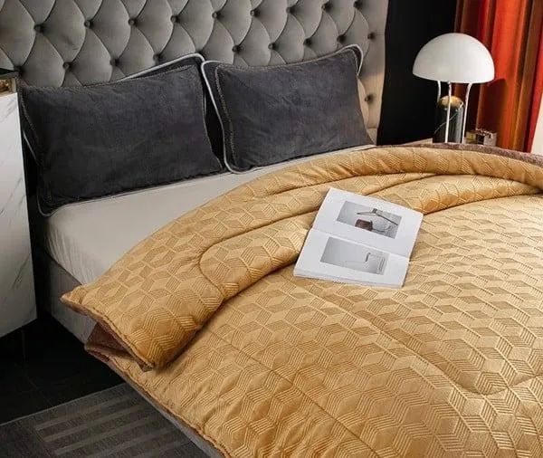 - The luxurious colors and design enhance the bedroom, adding a touch of modern elegance.