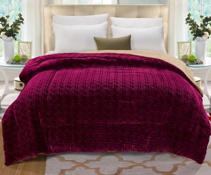 Nanara Life Sheep Wool Blanket features a traditional Chinese character pattern symbolizing prosperity, luxury, and elegance. The blanket is constructed with three layers: a wool layer, a cushion layer, and a top layer of snow velvet, providing exceptional warmth without static buildup, ensuring a peaceful sleep even during the coldest winter nights.