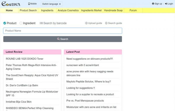 CosDNA, short for Cosmetics DNA, is a website designed to check the ingredients in a cosmetic product, its effects, and the safety of the product. It is often described as a “cosmetic encyclopedia.” The site features products from major brands as well as popular labels from Japan, Korea, the UK, the US, and more. New products are regularly updated.