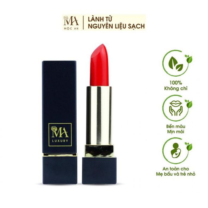 Luxury Matte Lip Care by Mộc An is a lead-free lipstick made entirely from natural ingredients. It’s incredibly smooth, moisturizes, and stays vibrant on your lips.