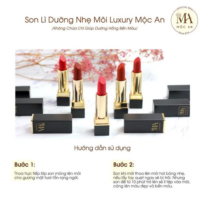 Purchase Link: shopee.vn/Son-Lì-Dưỡng-Nhẹ-Môi-Luxury-Mộc-An-Không-Chứa-Chì-Giúp-Dưỡng-Hồng-Bền-Màu-4g-i.33340014.10903017613