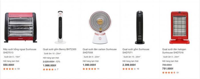 When it comes to heaters, Dien May Xanh offers a diverse selection of models, including Sunhouse oil heaters, Rapido ceramic heaters, Sunhouse infrared heaters, as well as popular fan heaters like the Kangaroo ceramic fan heater and Benny ceramic fan heater, all praised for their quality and reasonable prices.