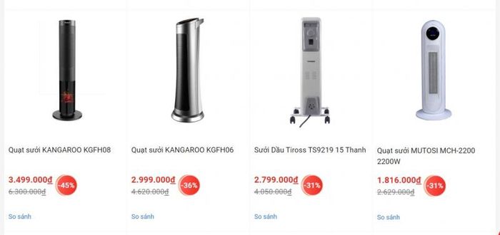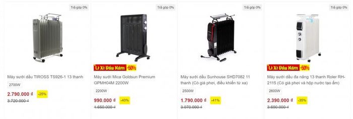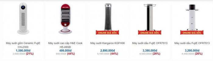 Here, you will find genuine heaters from well-known countries like Japan and South Korea, including brands such as Kangaroo, Saiko oil heaters, Delonghi oil heaters, Mutoshi Ceramic air conditioners, and Goldsun Mica heaters. With prices ranging from below 5 million to over 10 million VND for more advanced models, customers have many options to choose from.