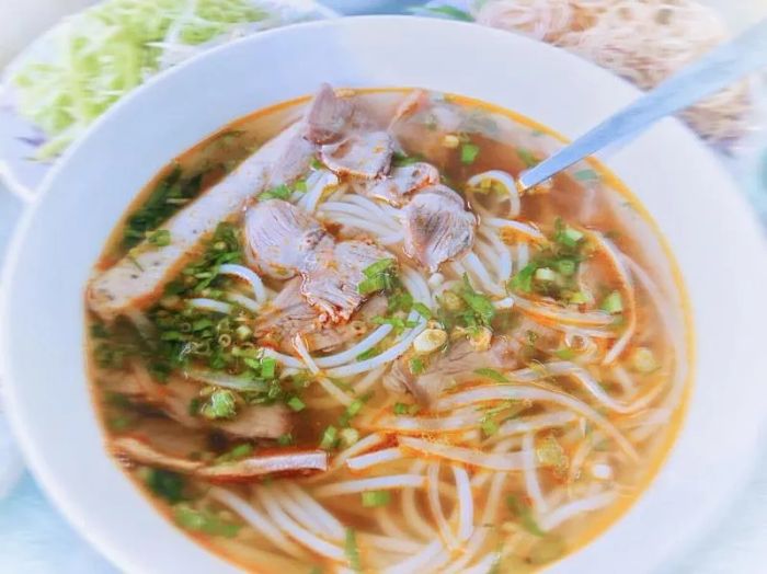Next on Mytour's list is Sung Tree Restaurant, one of the top spots for pho and noodle dishes on Truong Dinh Street. The bowl of noodles is overflowing with tender meat, with a rich and fragrant broth that fills the air. Thinly sliced beef with visible marbling sits atop plump, round noodles, all covered by a shiny layer of oil. The prices are incredibly affordable, making it hard to beat.