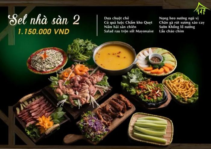 Renowned as one of the top dining spots in Hanoi, Nhà sàn 141 guarantees guests an exceptional dining experience with impeccable service. It’s no exaggeration to say that Nhà sàn 141 is a hub for culinary delights from various regions. The dishes here are so tempting that just the sight of them will awaken your taste buds. Here, you can indulge in a wide variety of dishes, from appetizers to main courses, snacks, and desserts.