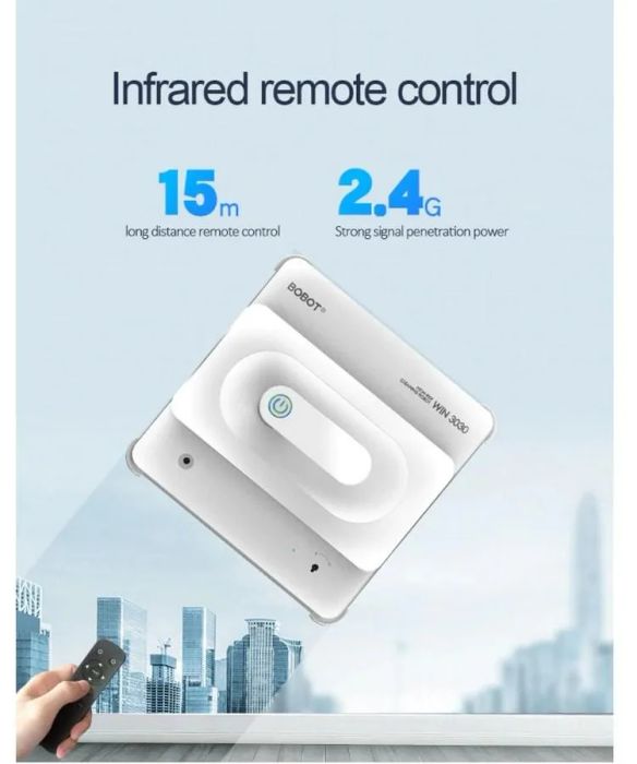 - Remote Control Operation: You can control the BOBOT WIN3030 remotely, allowing you to clean windows that have been neglected for years or simply reduce cleaning costs.