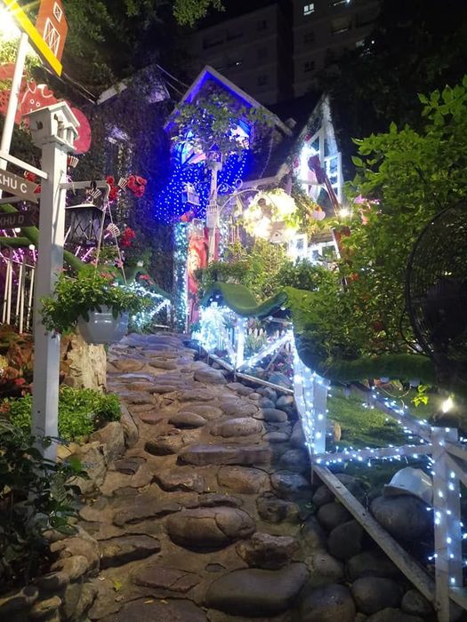 The cafe boasts an open balcony surrounded by lush trees, a colorful garden with various flowers, and the gentle sound of an artificial stream flowing through the garden. All of this creates a magical yet modern atmosphere. In the evening, Du Miên Garden lights up, transforming into a beautiful landscape, with lights illuminating the garden and blending both vintage and contemporary styles. The venue exudes a calm, Western-inspired ambiance.