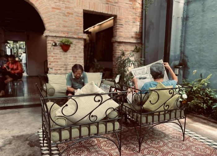 For a more romantic experience, choose a seat in the garden corner, with a canopy of vines above and comfortable sofa cushions below, creating a relaxed and intimate atmosphere. Each seating area offers a unique perspective, evoking nostalgic memories from the past. With just a laptop, you can work creatively or meet with clients and business partners in this peaceful setting.