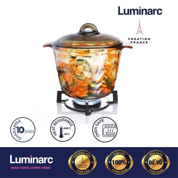 This glass pot is easy to clean, even after cooking oily foods, saving time on daily washing. The amber-colored Luminarc glass pot is shock-resistant to temperature changes (-35 to +800°C). It heats up quickly and retains heat efficiently, making it ideal for simmering or medium heat cooking to save energy. The 3L premium glass pot can be used on gas stoves, electric stoves, or in microwaves (without a lid). It is also dishwasher safe.