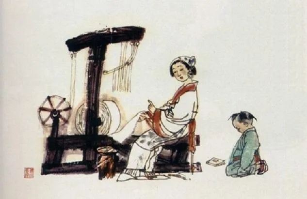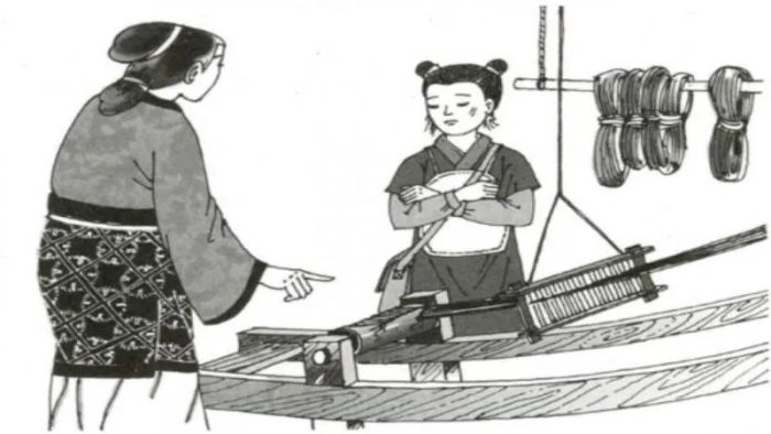 When her son skipped school to play, the mother was weaving cloth. She cut the fabric, symbolizing that skipping school would ruin his education in the same way the unfinished cloth would be ruined. She used this as a gentle but firm lesson to instill in him the importance of commitment to learning. Her son felt her deep love and care, which motivated him to study diligently.
