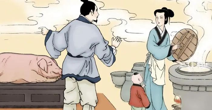 One day, when her neighbor slaughtered a pig, her son asked why people kill pigs. She casually replied that they did it to feed him. Realizing she had made a mistake, she went to the market to buy some pork to keep her promise to him. This moment demonstrated how the mother’s integrity and her ability to keep her word taught her son the importance of honesty and integrity.
