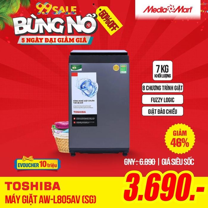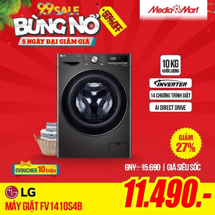 Nguyen Kim is the perfect place to purchase a washing machine, whether in person or online. They often have large promotional events during holidays and special occasions, allowing you to enjoy great discounts and savings.