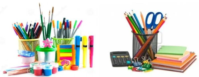 - Office supplies: markers, document bags, adhesive tapes, whiteboard pens, staplers, leather notebooks, rulers, hardcover notebooks, spiral notebooks, etc.