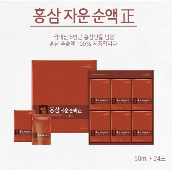 - Red ginseng extract (with solid content over 1.5% in purified water), 100% Korean ginseng (6 years old)
