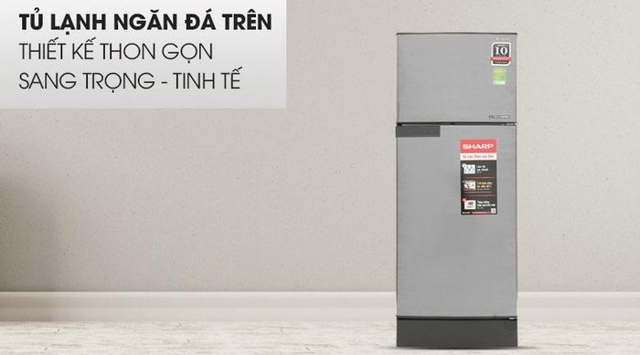 Sharp Inverter 182L SJ-X201E-DS Refrigerator features a traditional two-door design with a top freezer, a familiar choice for Vietnamese consumers. Its compact size makes it easy to install in any part of your home, and with a 182-liter capacity, it is perfect for families of 2-3 members.