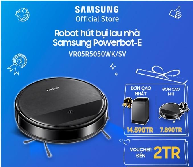Order Link: shopee.vn/Robot-hút-bụi-lau-sàn-Samsung-Powerbot-E-lực-hút-cực-mạnh-4200Pa-(VR05R5050WK)-i.65589552.12164539589?