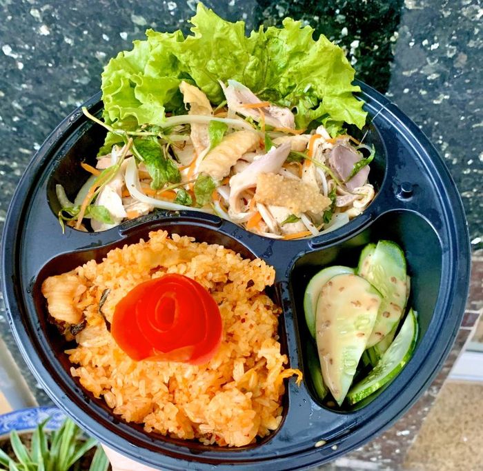At Đăng Phúc Food, the chicken is perfectly fried – crispy on the outside, tender on the inside, hot and fragrant. The chicken is well-seasoned, ideal for pairing with the rice. The meat is firm, not too soft or dry. The dish is beautifully plated, with ginger fish sauce and spicy fish sauce for extra flavor. This is the last recommendation Mytour offers for the best crispy chicken rice experience.