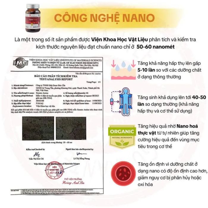 Xnumx Amino has been endorsed and recommended by top nutrition experts. It is the first product in Vietnam to apply plant-based nano technology in health supplements, ensuring complete confidence in both quality and effectiveness.
