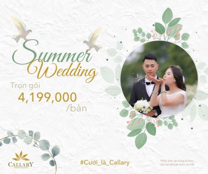 One thing that stands out at Callary is that all wedding decorations, from gallery tables and floral arches to backdrops and dining tables, are meticulously arranged and decorated entirely with fresh flowers. In addition, Callary provides two spacious underground parking areas, along with a modern sound and lighting system and LED screens to make the wedding day perfect for the couple. An additional peace of mind for couples is that the banquet prices remain stable, without fluctuating with the market or wedding season.