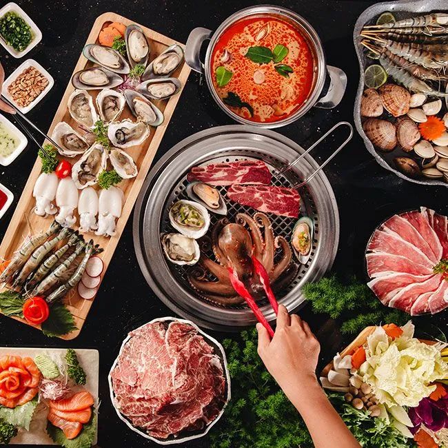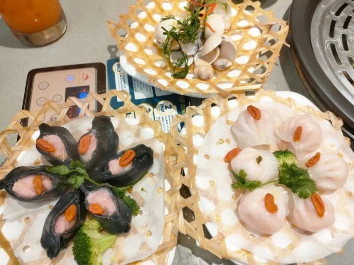 Additionally, the restaurant offers dozens of premium ingredients including volcanic beef, beef meatballs, beef flowers, Surimi squid flowers, fresh seafood, vegetables, mushrooms, shrimp paste, and various dumplings. The rich buffet line includes both hot dishes and ready-to-eat meals, while the condiment station is full of diverse options for you to mix your own perfect combination. Beyond the delicious food, the restaurant offers a luxurious, modern setting with dominant orange tones, state-of-the-art odor removal systems, and air conditioning to ensure a pleasant dining experience. It’s the perfect place to gather with friends and family for a memorable meal.